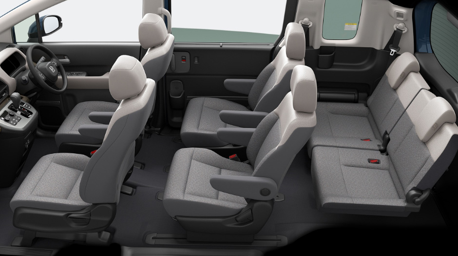 乗車人数や使い方に合わせて、2列シート5人乗りの「CROSSTAR」、3列シート6人乗り(キャプテンシート)、3列シート7人乗り(ベンチシート)から選択可能。特に3列目シートは、従来モデルより軽量化され、跳ね上げ操作がより簡単になりました。格納時の位置も低く抑えられ、後方の視界を妨げず、広々とした荷室を確保できます。