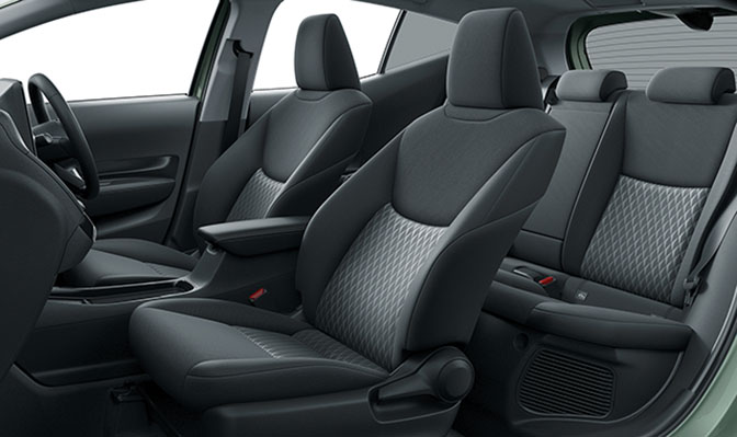 シートは、長時間のドライブでも疲れにくいよう、形状やクッション性に工夫が凝らされています。また、ファブリック素材だけでなく、撥水・撥油機能付きファブリックシート表皮(Gグレード)も設定され、日常使いでの汚れを気にせず使用できる利便性も高めています。