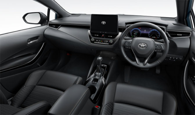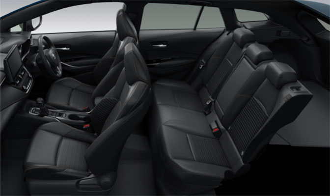 カローラツーリングのインテリアは、シンプルでありながら上質な素材感と、使いやすさを追求した機能性を兼ね備えています。ドライバーが運転に集中でき、乗員全員が快適に過ごせる空間が広がります。