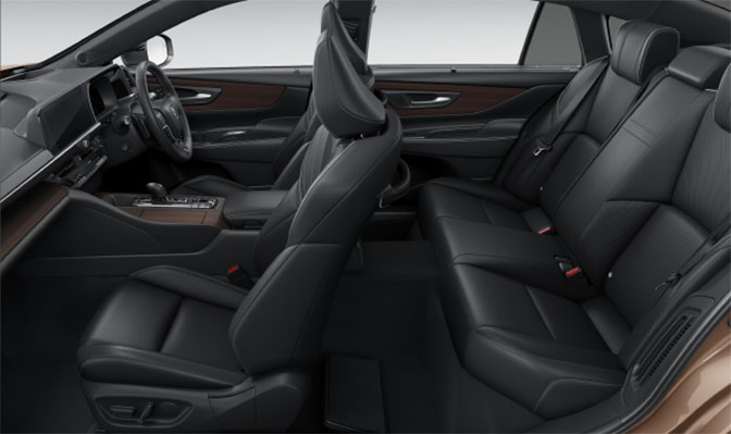 リアデザインは、一文字に繋がるテールランプが特徴的で、ワイド感を強調しつつ、先進的な印象を与えます。どの角度から見ても隙のない、まさに「美しいセダン」と呼ぶにふさわしいデザインです。日本の道路環境にも配慮しつつ、海外の高級セダンと肩を並べる存在感を放ちます。