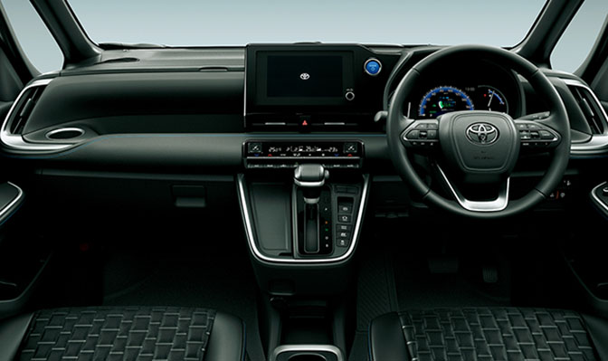 専用の大型フロントグリルや18インチアルミホイール(ガソリン車)、ブラック塗装された各パーツが、ヴォクシーらしいクールでアグレッシブなスタイルを強調。内装も合成皮革シートや本革巻きステアリングで上質感が高く、所有満足度を満たします。